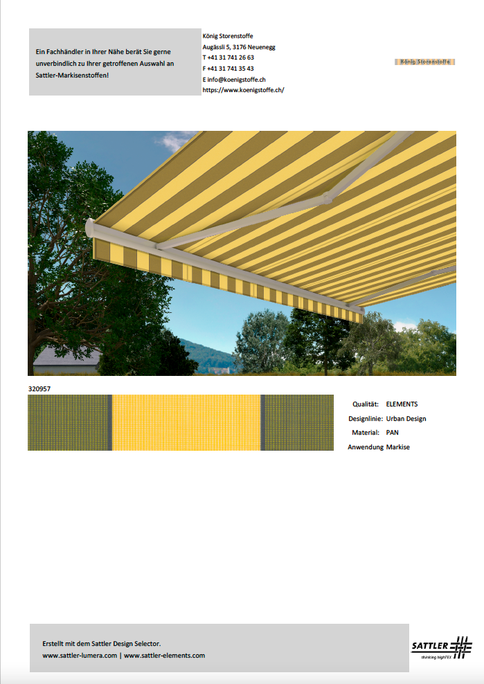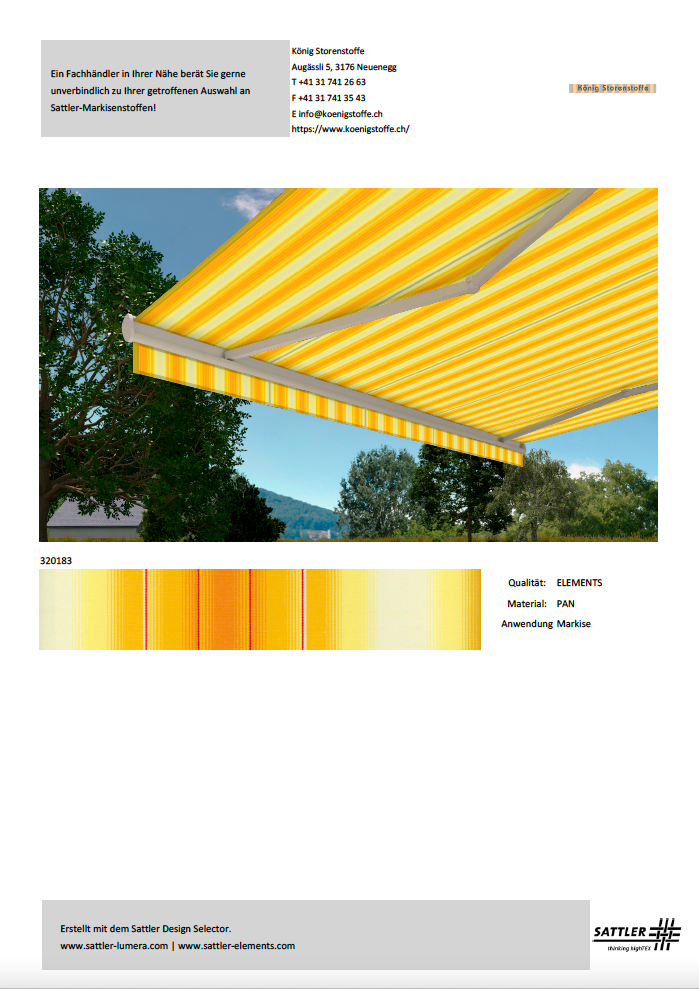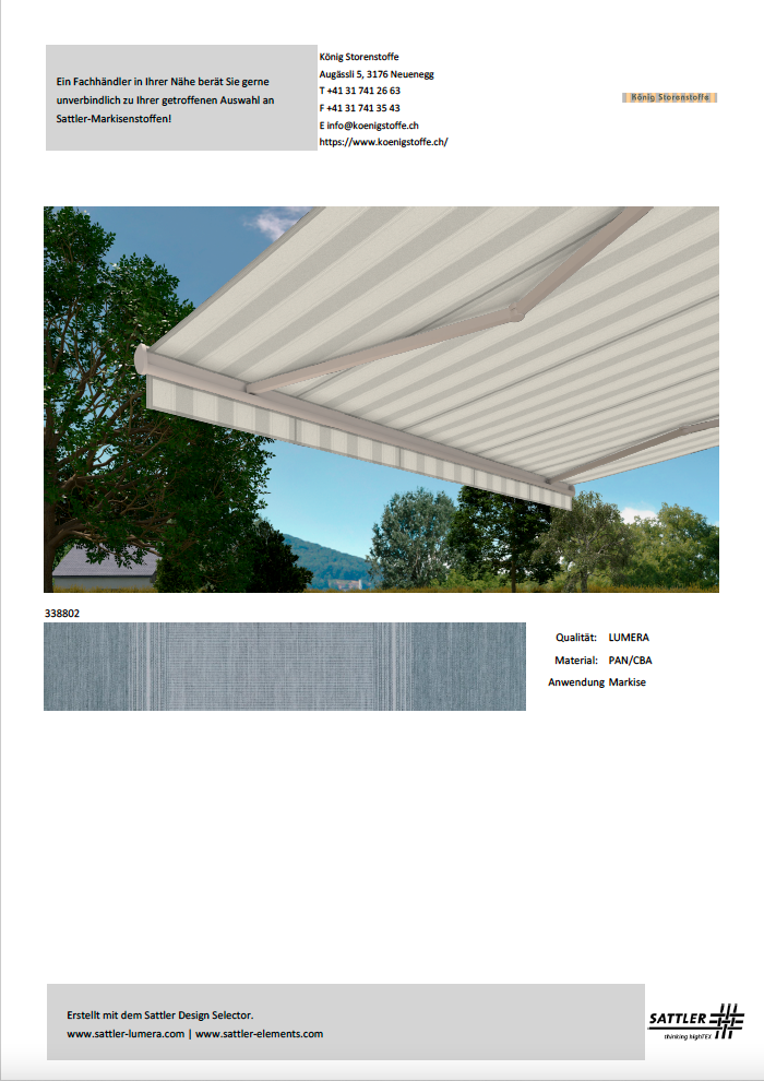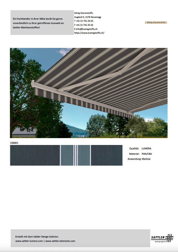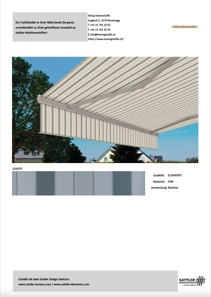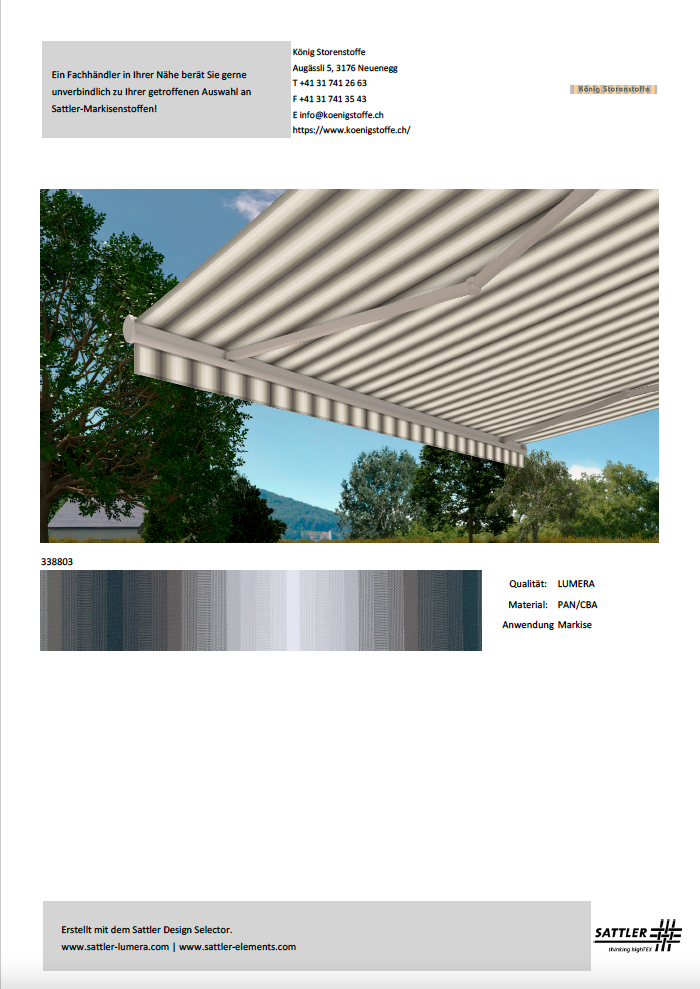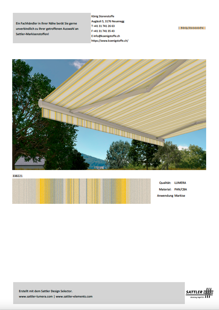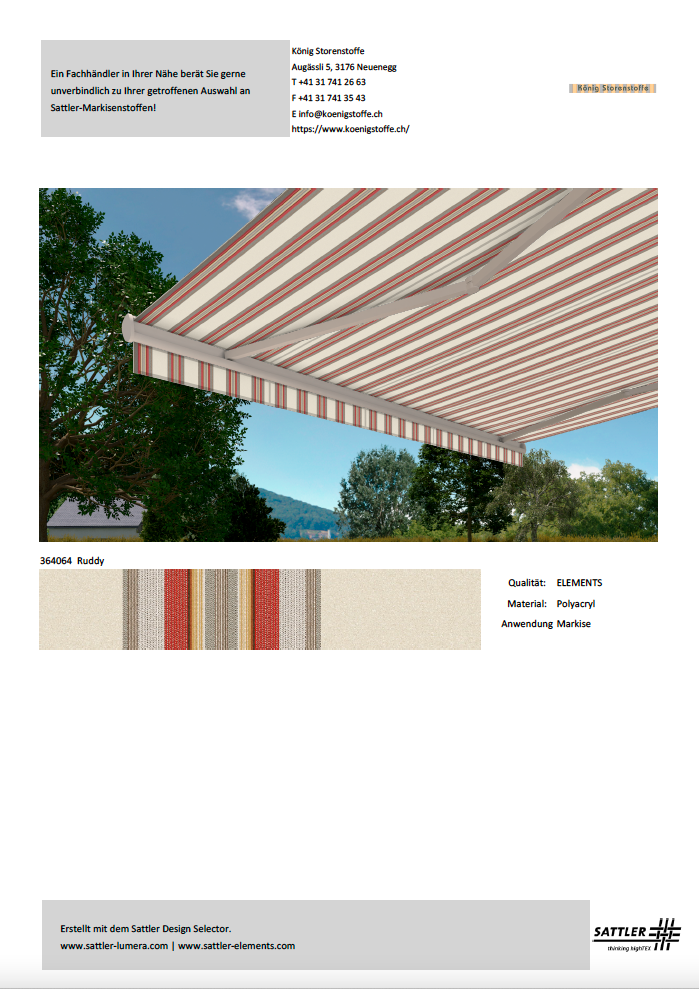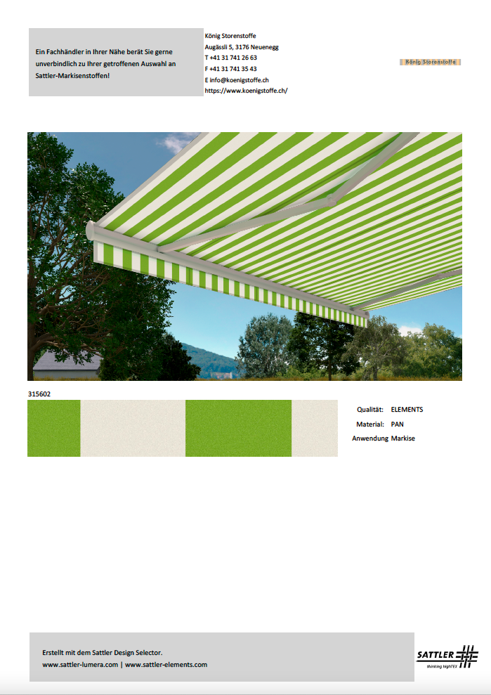 Bitte treffen Sie Ihren Kaufentscheid anhand von Stoffmustern.