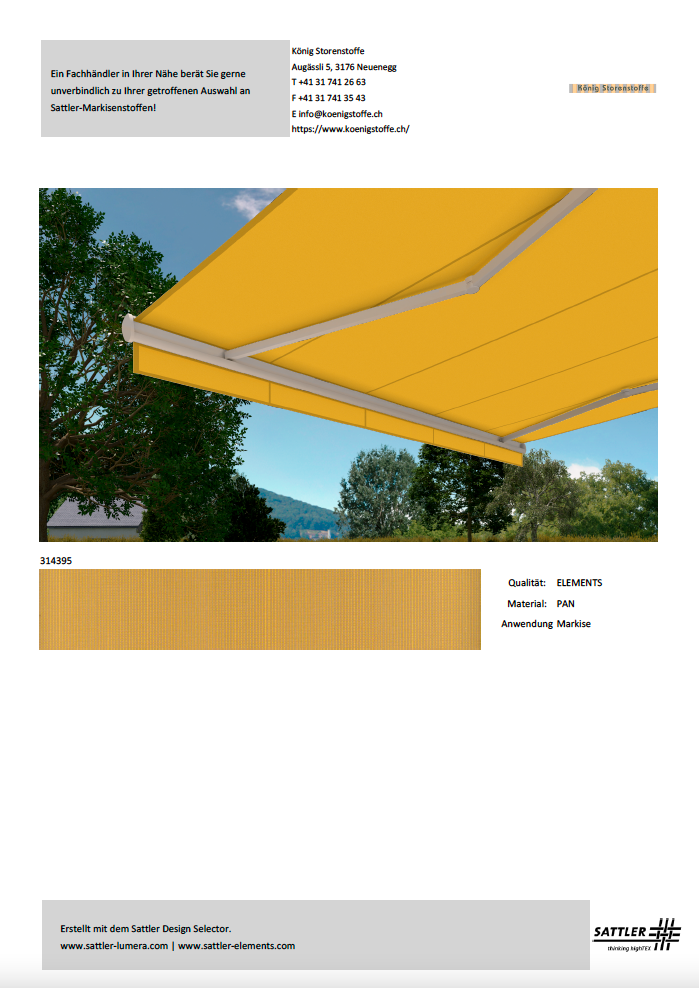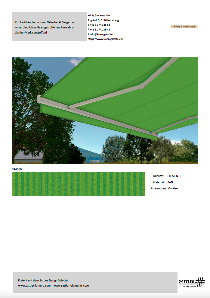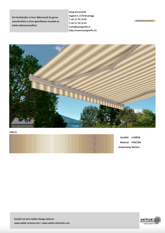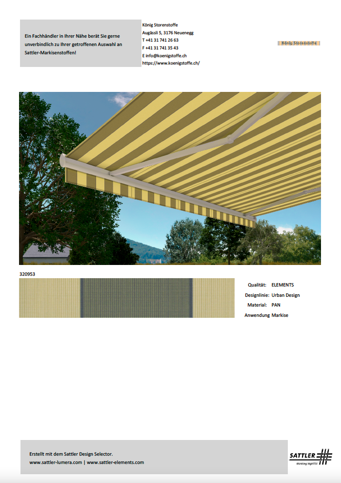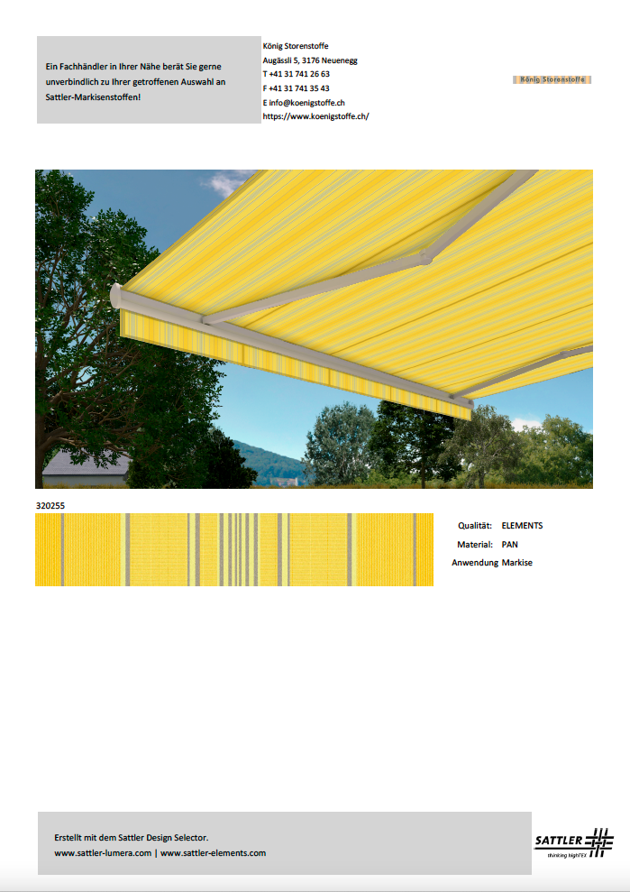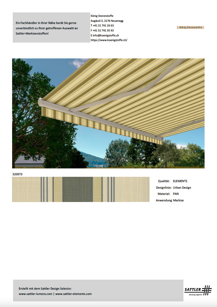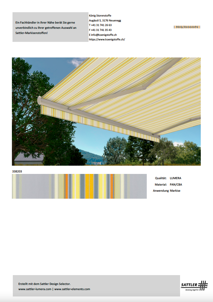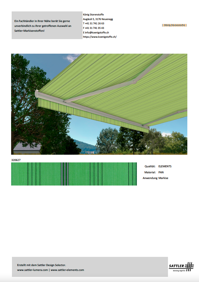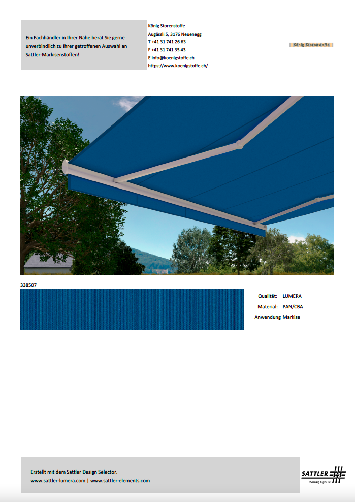 Bitte treffen Sie Ihren Kaufentscheid anhand von Stoffmustern.